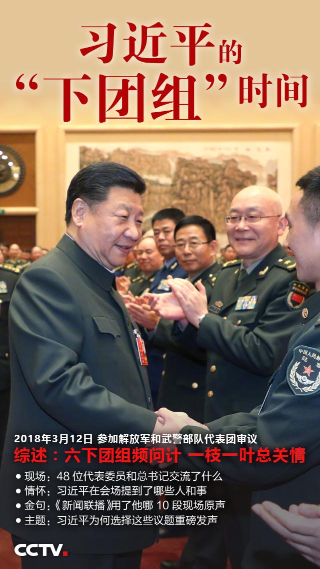 2018年3月12日,习近平连续第六年到解放军和武警部队代表团参加审议。这也是他今年两会期间的最后一次下团组活动。
