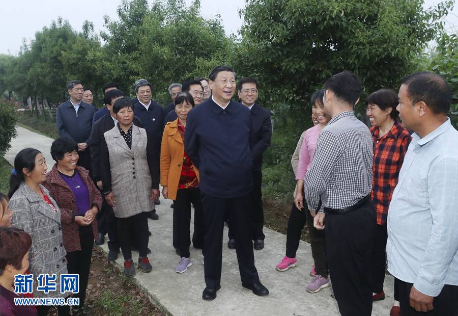 位于渠首附近的九重镇邹庄村共有175户750人,2011年6月因南水北调中线工程建设搬迁到这里。习近平走进利用南水北调移民村产业发展资金建立起来的丹江绿色果蔬园基地,实地察看猕猴桃长势,详细了解移民就业、增收情况。听说全村300余人从事果蔬产业,人均月收入2000元以上,习近平十分高兴。他强调,要继续做好移民安置后续帮扶工作,全面推进乡村振兴,种田务农、外出务工、发展新业态一起抓,多措并举畅通增收渠道,确保搬迁群众稳得住、能发展、可致富。随后,习近平步行察看村容村貌,并到移民户邹新曾家中看望,同一家三代围坐在一起聊家常。邹新曾告诉总书记,搬到这里后,除了种庄稼,还在村镇就近打工,住房、医疗、小孩上学也都有保障。习近平指出,人民就是江山,共产党打江山、守江山,守的是人民的心,为的是让人民过上好日子。我们党的百年奋斗史就是为人民谋幸福的历史。要发挥好基层党组织的作用和党员干部的作用,落实好“四议两公开”,完善村级治理,团结带领群众向着共同富裕目标稳步前行。离开村子时,村民们来到路旁同总书记道别。习近平向为南水北调工程付出心血和汗水的建设者和运行管理人员,向为“一泓清水北上”作出无私奉献的移民群众表示衷心的感谢和诚挚的问候。他祝愿乡亲们日子越来越兴旺,芝麻开花节节高。